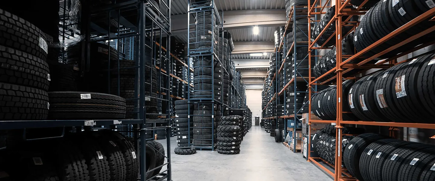 Schnelle Auftragsbearbeitung und Lieferung garantiert. Unser Hochregallager wird durch ein modernes System verwaltet und beinhaltet Reifen, Felgen und Zubehör sowie Kompletträder für die Erstausrüstung.